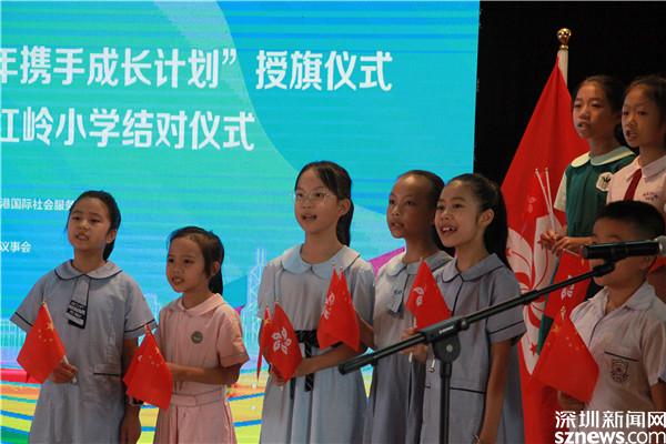 讀特客戶端·深圳新聞網2021年9月30日訊(記者 劉嘉敏 通訊員 黃潔)2021年9月30日上午,在慶祝中國共產黨成立100周年、喜迎新中國成立72周年之際,羅湖區(qū)委統(tǒng)戰(zhàn)部、羅湖團區(qū)委、羅湖區(qū)教育局、羅湖區(qū)婦聯、香港國際社會服務社共同舉行“手牽手向前走——深港青少年攜手成長計劃”授旗儀式暨羅湖區(qū)跨境學童服務中心和深圳市紅嶺小學結對儀式,以更實舉措推進深港青少年廣泛交往、全面交流、深度交融。