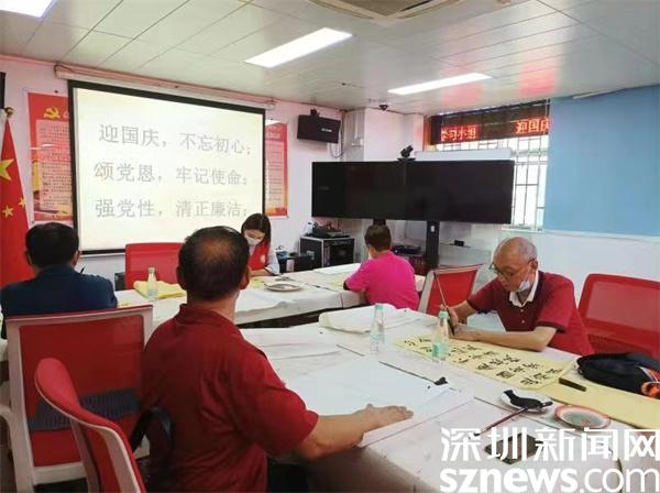 本次小組活動共5節(jié),這節(jié)小組以“迎國慶 頌黨恩”為主題,組員們在老師的耐心指點下,通過普通的筆墨和紙張,用一筆一畫表達著自己愛國愛黨情懷。“這每一筆都表達著我對黨的忠誠和對祖國的熱愛。”剛完成一幅書法作品的叔叔說道。