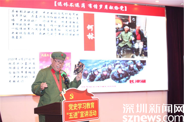 “他是71年前抗美援朝長(zhǎng)津湖戰(zhàn)役中‘冰雕連’唯一健在的幸存者周全弟,四肢被凍傷后全部截肢,但他學(xué)會(huì)了生活自理,洗漱、穿衣、吃飯、搖著輪椅四處“散步”,甚至用手機(jī)上網(wǎng)看新聞。我們一起參加了中央電視臺(tái)在嘉興南湖紅船舉辦的《老兵你好》訪談節(jié)目?!?4歲高齡的何林說,他是一名深圳拓荒牛代表、羅湖區(qū)“紅星宣講隊(duì)”成員。