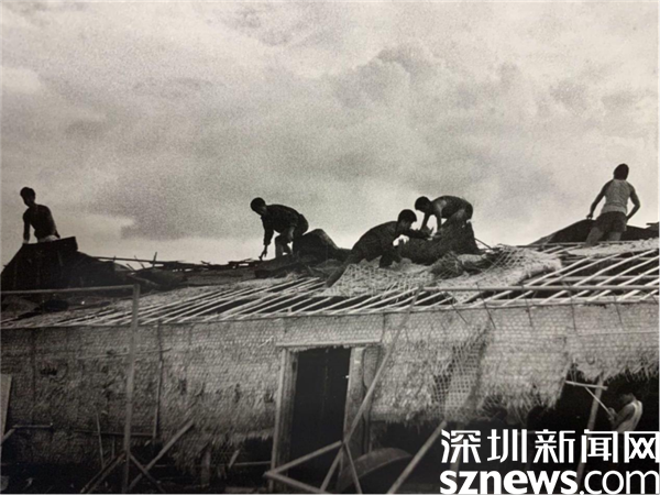 竹葉棚 1982 年部隊(duì)營(yíng)房臺(tái)風(fēng)過后重拾家園。攝影/周順斌