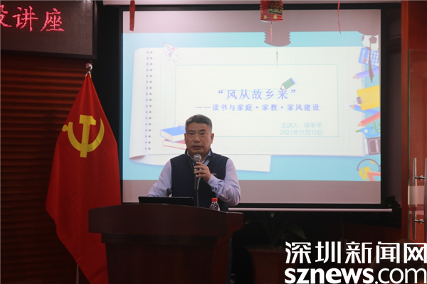 讀特客戶端·深圳新聞網(wǎng)2021年11月15日訊(記者 劉嘉敏 通訊員 黃北全)“故鄉(xiāng)的人,故鄉(xiāng)的事;鮮活的面容,厚實(shí)的情意,隨著年齡的增長而愈加清晰,過往的經(jīng)歷都成為生命中美好的回憶?!睘榧訌?qiáng)“家庭家教家風(fēng)”建設(shè),促進(jìn)未成年人健康成長,在第二十二屆深圳讀書月開展之時(shí),2021年11月13日下午,深圳市羅湖區(qū)婦女聯(lián)合會(huì)和羅湖區(qū)婦女兒童活動(dòng)中心特舉辦“‘風(fēng)從故鄉(xiāng)來’——讀書與家庭家教家風(fēng)建設(shè)”主題講座,特別邀請(qǐng)深圳市桂園中學(xué)黨總支副書記,中學(xué)高級(jí)教師,中國散文學(xué)會(huì)會(huì)員,廣東省“點(diǎn)燈人”校園閱讀推廣人,廣東省作家協(xié)會(huì)會(huì)員陳冬平老師主講,40多名區(qū)內(nèi)外家長和學(xué)生參加本次活動(dòng)。