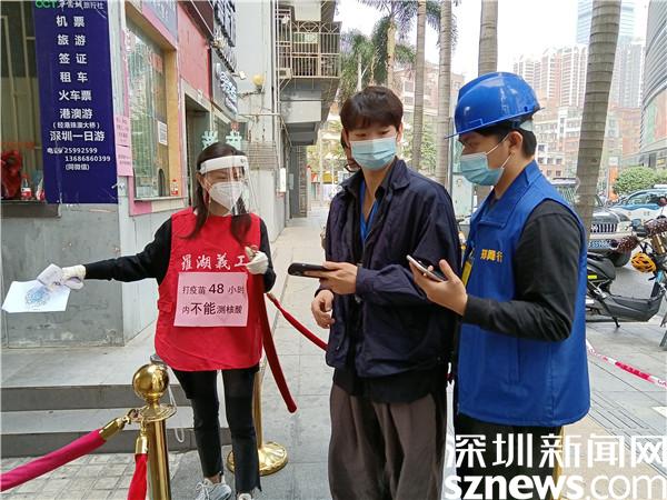 1月9日,羅湖區(qū)開始第二輪全員核酸檢測,桂園街道老圍社區(qū)在禧程酒店、人民銀行門口、老圍花園五樓設(shè)立了三個臨時檢測點(diǎn),社區(qū)工作人員和志愿者以及區(qū)里和街道的下沉人員身穿紅馬甲,在社區(qū)黨委的領(lǐng)導(dǎo)下,全力以赴,積極組織和引導(dǎo)市民快速有序地采樣離場。