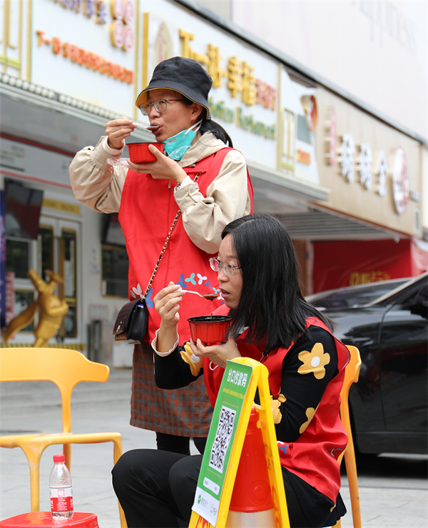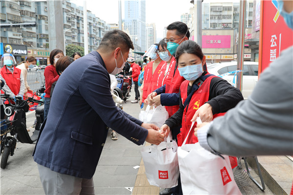 據(jù)弓岳東介紹,當(dāng)天一大早,公司便組織員工開始熬制臘八粥,包裝好就陸續(xù)送到了羅湖翠竹街道水貝片區(qū)疫情防控一線的工作者手中,讓他們在第一時(shí)間就能吃上熱騰騰的臘八粥。