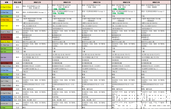 受疫情影響,郭女士目前居家隔離。期間,她幫助孩子制定了完整的假期計(jì)劃,她說(shuō)“小孩子自控力還是弱一點(diǎn),前兩天我也試著讓自己安排,但發(fā)現(xiàn)效果不太好,導(dǎo)致玩也沒(méi)玩好,學(xué)也沒(méi)法學(xué)好。就只能和他一起給做了一個(gè)很詳細(xì)的計(jì)劃表,讓他每天跟著走。”