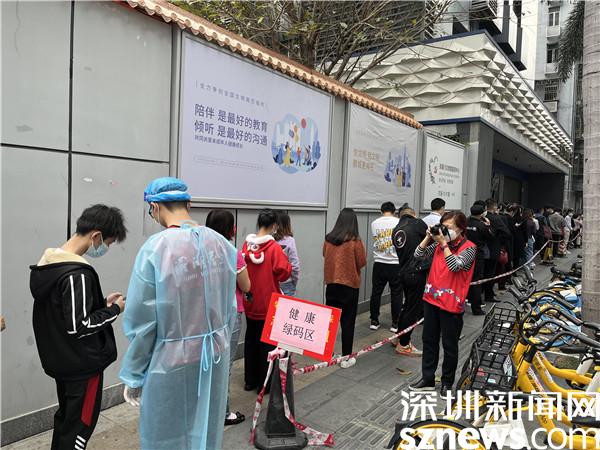 為了方便轄區(qū)居民、轄區(qū)企業(yè)員工核酸檢測,老圍社區(qū)在轄區(qū)內(nèi)設(shè)置了多個臨時核酸檢測點。楊紀歐每天不停地在老圍花園檢測點、名仕閣檢測點、禧程酒店檢測點、大劇院檢測點輪流運送后補的物資,帶領(lǐng)著不同時間段的義工去到不同的核酸點,安排好義工的工作內(nèi)容和交接。對一些新手義工,她都會手把手地教,如何查驗綠碼和粵酸碼、如何維持秩序等。