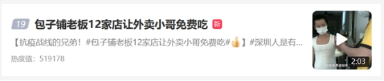 讀特客戶(hù)端 深圳新聞網(wǎng)2022年3月24日訊(記者 胡津瑋)3月23日,深圳“包子鋪老板12家店讓外賣(mài)小哥免費(fèi)吃”火上熱搜,網(wǎng)友紛紛點(diǎn)贊稱(chēng)要多買(mǎi)包子支持老板。包子鋪老板陶先生回應(yīng)稱(chēng),會(huì)把愛(ài)心舉措延續(xù)下去,已在籌劃方便、快捷的“外賣(mài)小哥套餐”。