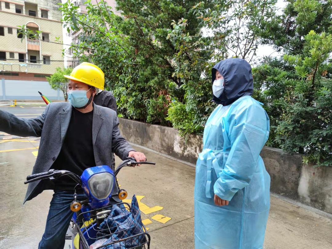 △ 關(guān)工委委員趙為兵、賴碧梅帶頭參與疫情防控工作,動(dòng)員轄區(qū)物業(yè)、熱心居民共同參與抗疫志愿服務(wù)