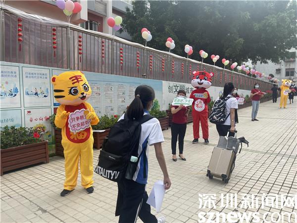 這是翠園東曉中學(xué)為歡迎學(xué)生返校,舉行的溫馨復(fù)學(xué)儀式,還為孩子們派發(fā)了暖心防疫用品?!盎丶业男那楹玫奖怼薄皧^斗沖刺、金榜題名”……不少孩子們紛紛舉著勵(lì)志牌與“小老虎”合照,宣告新學(xué)年的奮斗目標(biāo)。