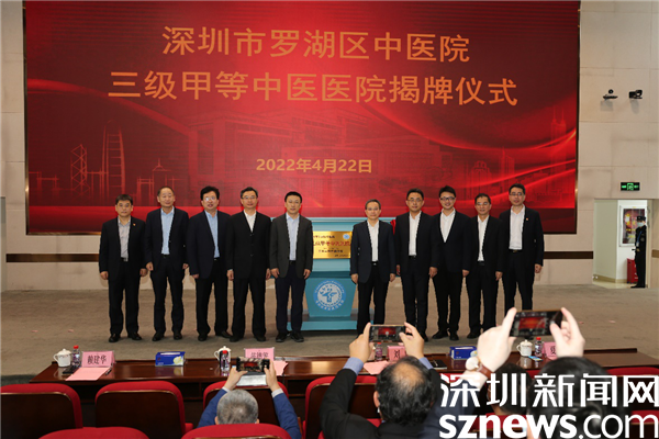 讀特客戶端·深圳新聞網(wǎng)2022年4月26日訊(記者 李慧 通訊員 王震)2022年4月22日,深圳市羅湖醫(yī)院集團(tuán)羅湖中醫(yī)院(上海中醫(yī)藥大學(xué)深圳醫(yī)院)正式掛牌“三級甲等中醫(yī)醫(yī)院”,成為羅湖區(qū)第二家三級甲等醫(yī)院。當(dāng)天,羅湖區(qū)委書記劉勝,區(qū)委副書記、區(qū)長范德繁,區(qū)領(lǐng)導(dǎo)夏東、賴建華出席揭牌儀式,并與現(xiàn)場嘉賓領(lǐng)導(dǎo)共同揭牌。
