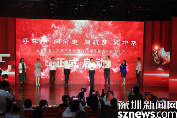 香港教育局局長楊潤雄,澳門教育及青年發(fā)展局副局長黃嘉祺,深圳市委教育工委副書記、市教育局黨組成員楊平分別致辭,充分肯定了攜手同學行動對深港澳文化交流的貢獻,并希望未來三地能有更加深入、密切的聯(lián)系,互惠雙贏,切實增強深港澳青少年的民族自豪感和凝聚力。隨后,領(lǐng)導(dǎo)與港澳青年代表上臺啟動深港澳青少年慶祝香港回歸25周年系列活動。