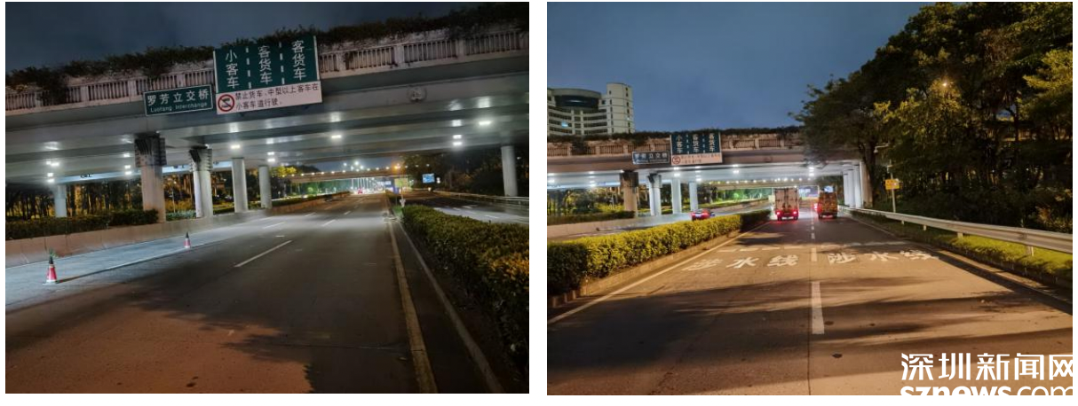 泥崗東路紅嶺立交橋下涉水線施工前后對比