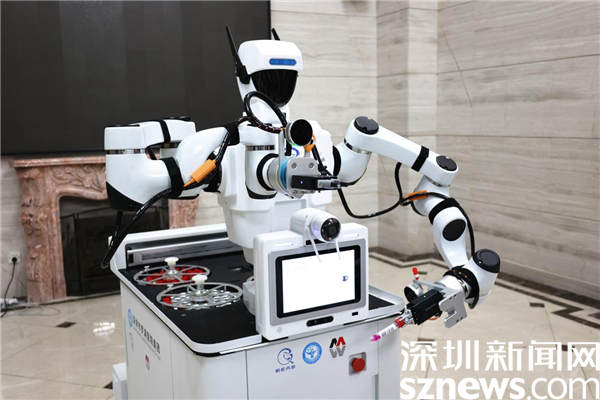 據(jù)悉,該款命名為“鵬程青耕”二代的高性能移動協(xié)作機器人產(chǎn)品由深圳市羅湖醫(yī)院集團牽頭,深圳墨影科技有限公司、深圳市人工智能與機器人研究院(AIRS)合作研發(fā)。該研發(fā)團隊由羅湖醫(yī)院集團孫喜琢博士任總負責人,覃金洲博士為醫(yī)療示范總執(zhí)行,墨影公司楊一鳴博士負責機器人及核心硬件自動化集成,AIRS 張?zhí)硗┦控撠熀诵乃惴ā?/p>