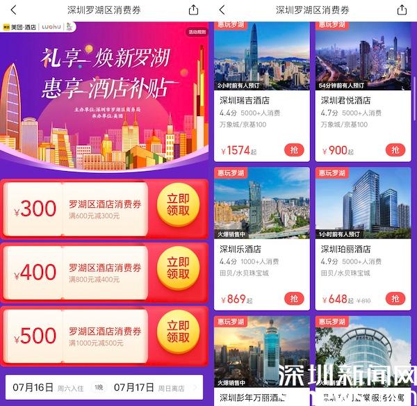 讀特客戶端·深圳新聞網(wǎng)2022年7月16日訊(記者 覃鈺清)7月16日,羅湖區(qū)會(huì)同羅湖區(qū)酒店行業(yè)協(xié)會(huì)、美團(tuán)推出“禮享煥新羅湖,惠享酒店補(bǔ)貼”活動(dòng),投入33萬(wàn)扶持資金,用于支持酒店、住宿消費(fèi)。消費(fèi)者可在美團(tuán)APP搜索“羅湖消費(fèi)券”、“羅湖酒店消費(fèi)券”等關(guān)鍵詞進(jìn)入活動(dòng)頁(yè)面,點(diǎn)擊“領(lǐng)取”按鈕即可獲得。本次優(yōu)惠額度包括:滿1000元減500元、滿800元減400元、滿600元減300元,最高五折優(yōu)惠,可在羅湖轄區(qū)內(nèi)40余家酒店使用。