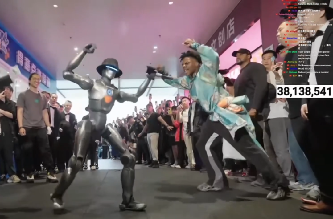 他在直播中感嘆“深圳是一個科技城市”,不斷發(fā)出驚嘆“Oh my god”。他不僅和眾擎人形機器人共跳斧頭幫熱舞,還在INS曬出和機器人PK后空翻的“人機battle”畫面。身高1.38米的機器人PM01以320度旋轉(zhuǎn)腰身,連跳帶翻行云流水,引得直播間彈幕炸鍋:“機器人都比我懂街舞!”