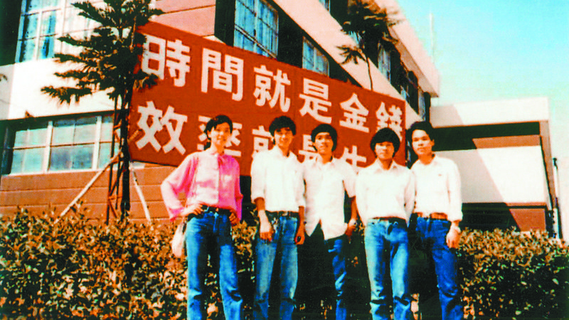 20世紀(jì)80年代初,蛇口青年工在標(biāo)語牌下留影