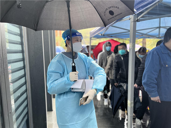 自深圳“0215”疫情突發(fā)以來,羅湖東門街道城東社區(qū)負(fù)責(zé)的湖貝社區(qū)公園臨時(shí)核酸點(diǎn)再次啟動。核酸點(diǎn)重啟的那天,雨嘩啦啦的下,負(fù)責(zé)人事安排、后勤保障的盧映均在工作群看到入口處的同事僅穿著雨衣服務(wù)居民的照片,舍不得讓站崗的同事長時(shí)間淋雨,恨不得自己去扛帳篷,奈何6個(gè)月身孕,只能安排現(xiàn)場的同事挪動帳篷,那帳篷沉得要四位男同志才扛得動。