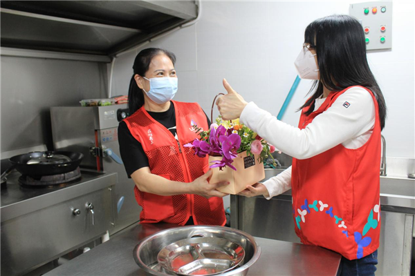 3月8日,是國際婦女節(jié),所有堅(jiān)守在羅湖區(qū)桂園街道老圍社區(qū)抗疫一線的女性社區(qū)工作者、下沉人員、志愿者和醫(yī)務(wù)人員都收到了一個(gè)精美的小花籃,花籃里百合、玫瑰、蘭花等悠然綻放,芳香四溢,鼓舞了滿員士氣。