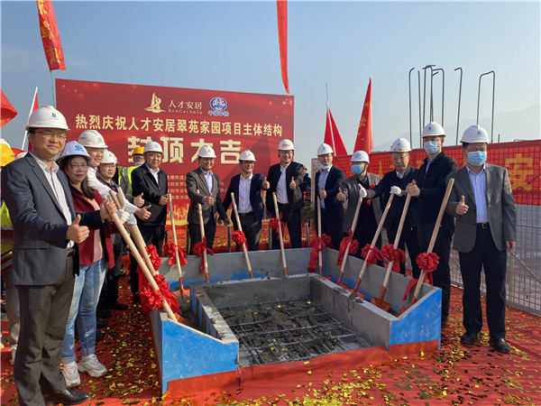 1月20日上午,由深圳市羅湖區(qū)蓮塘街道辦為實施主體、人才安居集團旗下羅湖人才安居公司代建的首個城市更新項目翠苑家園項目完成結構封頂。當天,羅湖區(qū)住房和建設局、區(qū)審計局、區(qū)城市更新和土地整備局、人才安居集團以及回遷業(yè)主等代表共同見證并完成最后一方混凝土澆筑。