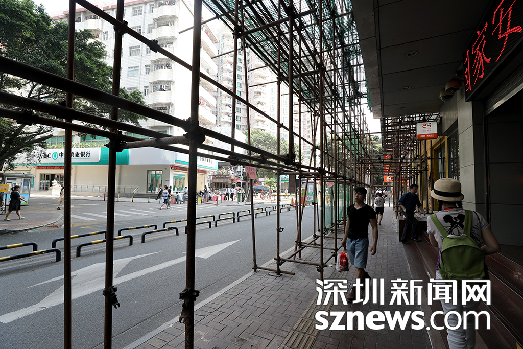 記者從白石洲地鐵站A出口出來(lái),沿著白石洲(北區(qū))沙河街,穿過正在施工的鋼架,一步步走進(jìn)深圳最大的城中村——白石洲