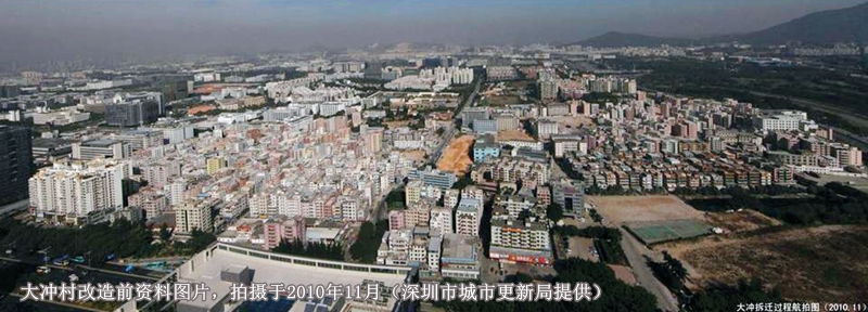 改造前,大沖村現(xiàn)狀用地呈現(xiàn)隨意開(kāi)發(fā)的“城中村”形態(tài),基礎(chǔ)設(shè)施比較缺乏,建筑密度大,改造難度較大,舊村改造涉及到1000戶左右原居民及300多戶非原居民的動(dòng)遷、7萬(wàn)多暫住人口的搬遷、近1500多棟建筑、約110萬(wàn)平方米的拆除,是深圳市規(guī)模最大的城中村改造項(xiàng)目。