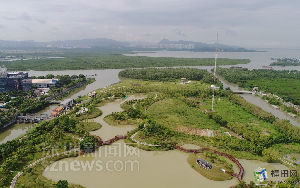 紅樹林生態(tài)公園西邊緊臨福田紅樹林國家級自然保護區(qū),南邊一河之隔的對岸是屬于拉姆薩爾國際重要濕地的香港米埔自然保護區(qū)。