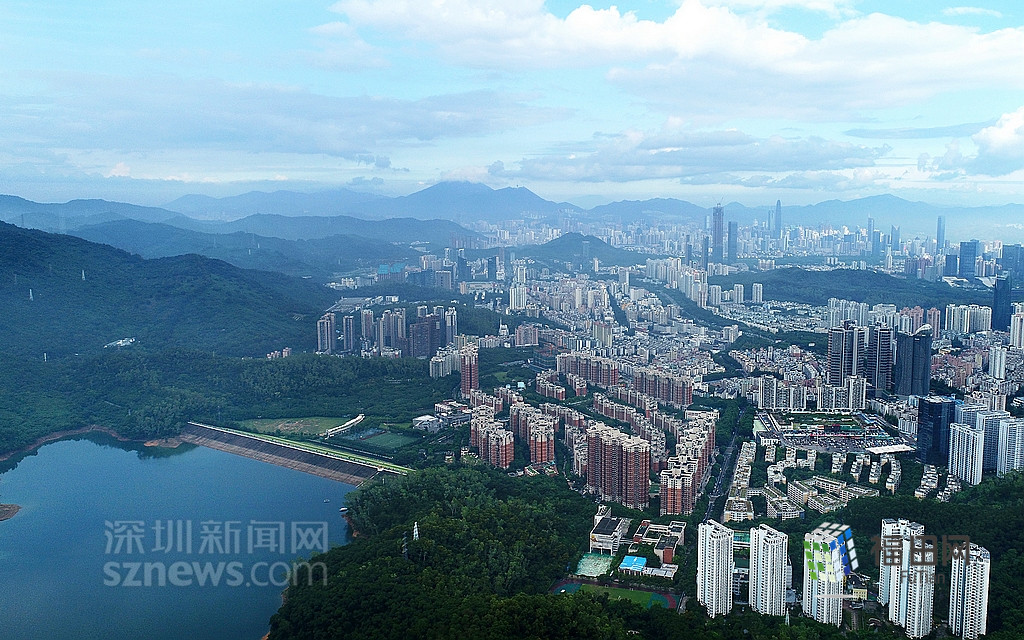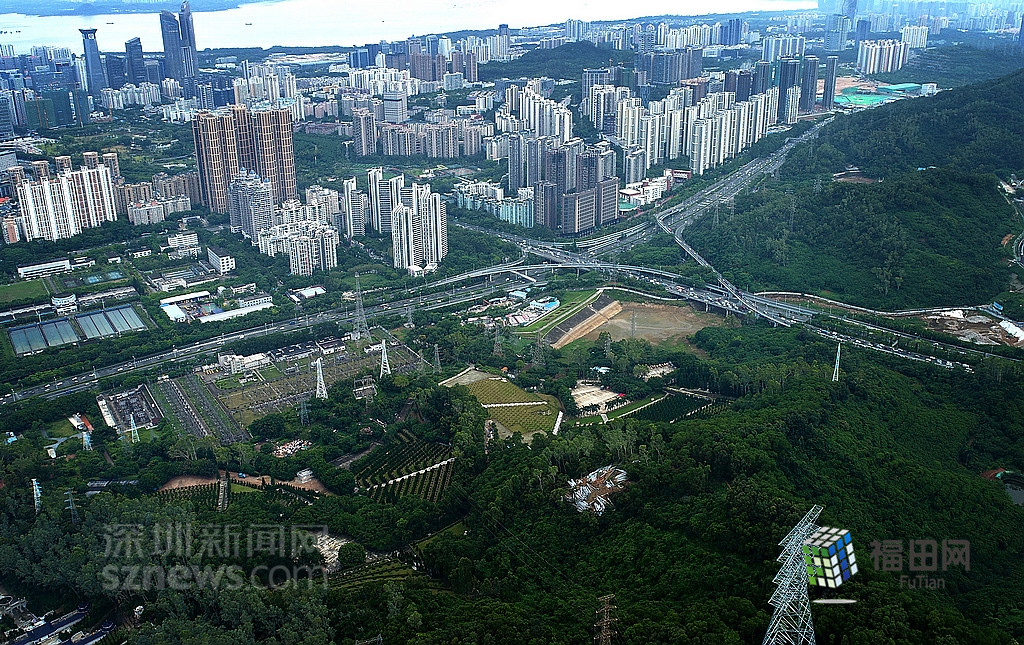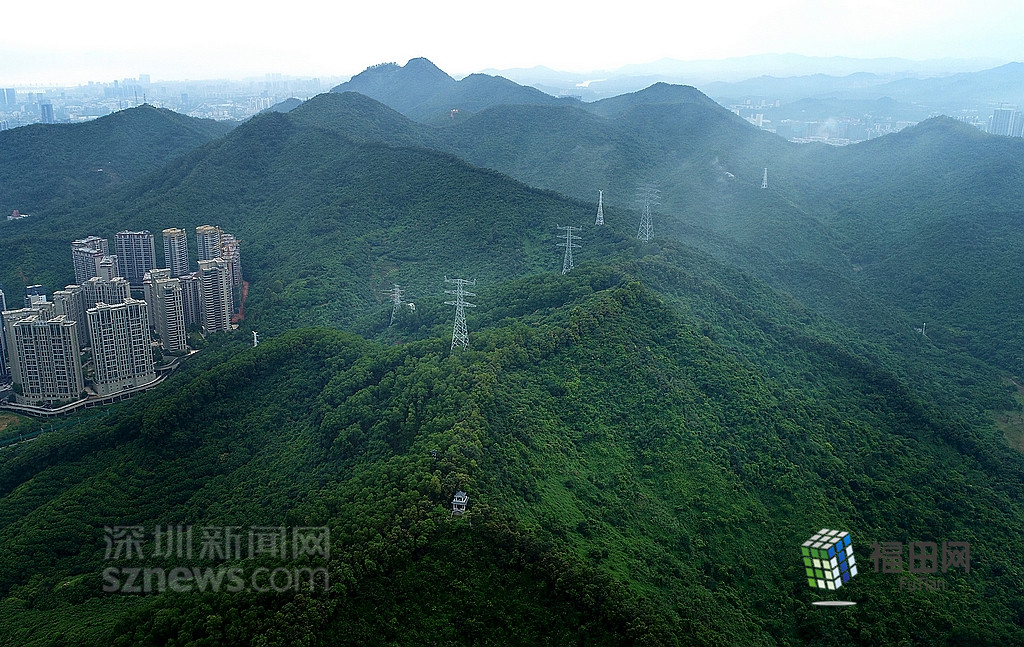 從梅林山高空可看見(jiàn)遠(yuǎn)處的平安大廈。