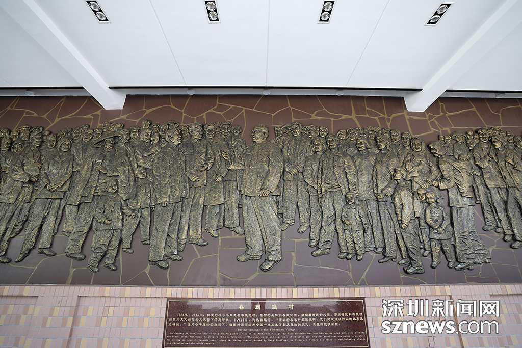 文化長廊中《春到漁村》的銅鑄浮雕再現(xiàn)了1984年鄧小平來漁民村考察的場景