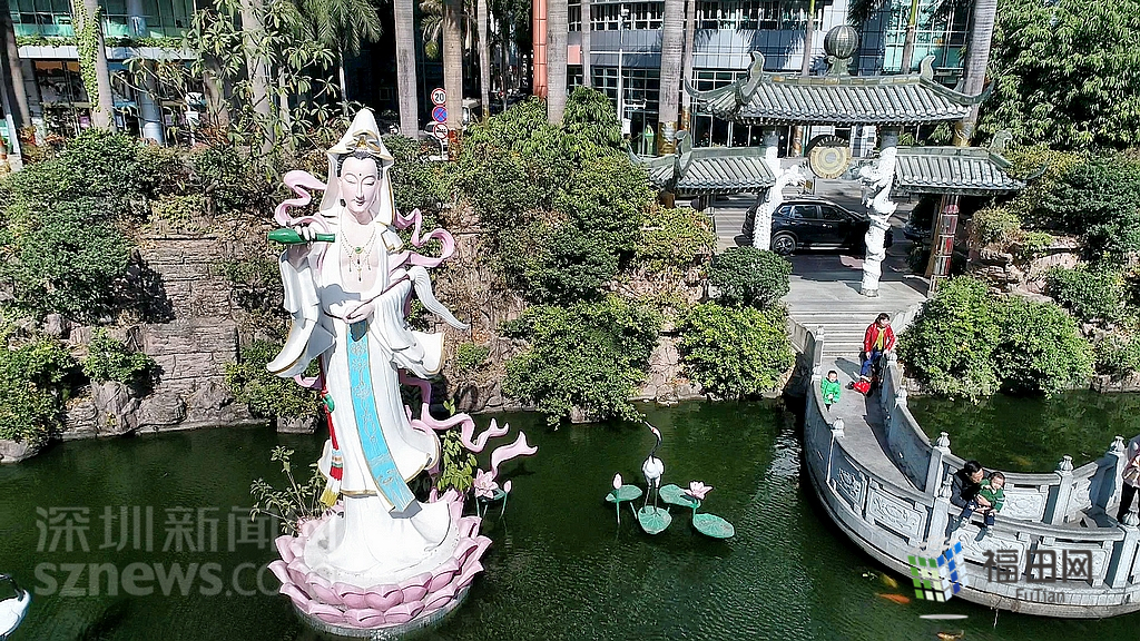 下沙文化廣場(chǎng)前鯉魚池的觀音像。