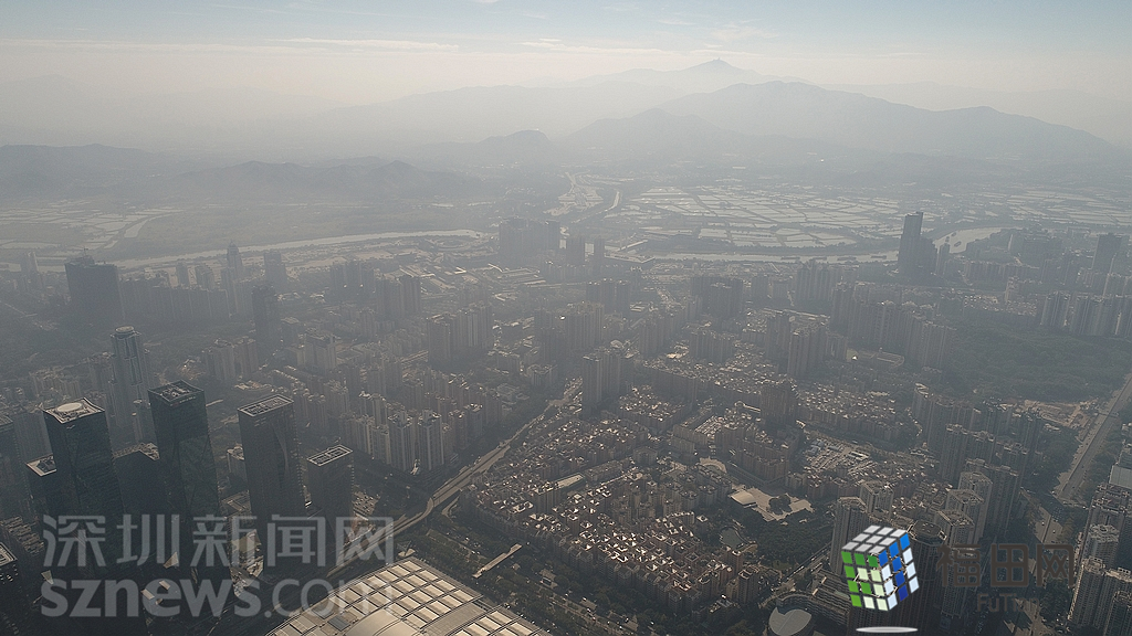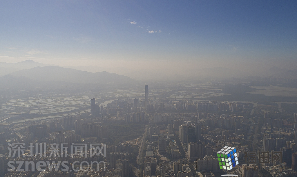 1月18日上午,記者操控?zé)o人機(jī)俯瞰深圳中心區(qū)發(fā)現(xiàn),灰霾將天空“割裂”成一道涇渭分明的界線,把城市籠罩得如同一個充滿霧靄的森林。從平安金融大廈的上空遠(yuǎn)眺,西南面的深圳灣在灰霾的籠罩下變成了一片“沙漠”,東面的京基一百幾乎被灰霾“吞沒”,北邊平時肉眼可看的梅林山也因為能見度較低變得若隱若現(xiàn),南面的米埔濕地也被云遮霧繞。