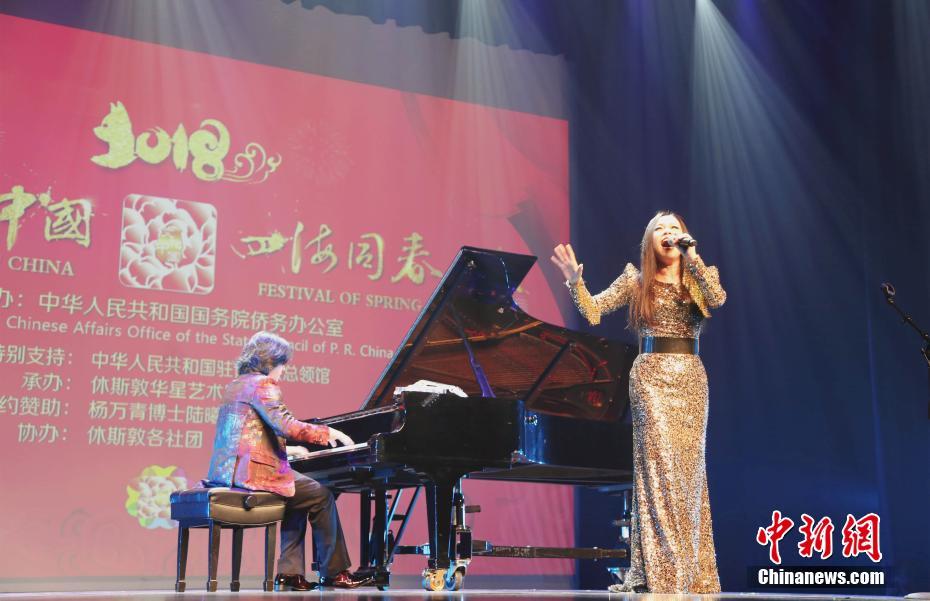 當(dāng)?shù)貢r間2月25日晚,2018年“文化中國·四海同春”藝術(shù)團(tuán)在美國南部城市休斯敦舉行慰僑綜藝晚會。圖為中國知名歌手蔡國慶獻(xiàn)唱《同一首歌》。休斯敦是2018年“文化中國·四海同春”藝術(shù)團(tuán)赴美演出的首站,獲得休斯敦華人華僑的熱情回應(yīng)。其后,該藝術(shù)團(tuán)還將奔赴美國奧蘭多、舊金山、芝加哥演出。中新社記者曾靜寧 攝