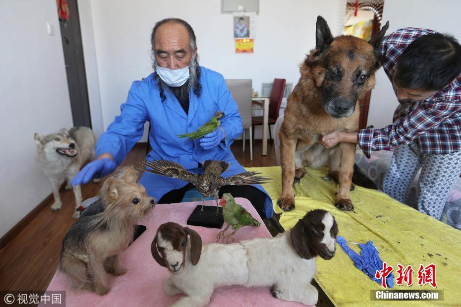 狗年到來,來找他將離世的愛犬和其他寵物做成標本的人絡(luò)繹不絕,動物們就這樣老郭手中復(fù)生。據(jù)老郭介紹,進入狗年,他接到了幾位主人送來的三只過世狗狗來做標本。從20歲出頭開始制作第一只貓頭鷹標本以來,在老郭手下復(fù)生的動物大到汗血賽馬、獅子、野豬,小到蜂鳥,近些年僅制作賽馬標本就有50匹,其它的寵物標本有數(shù)千余件。文字來源:法制晚報 圖片來源:視覺中國