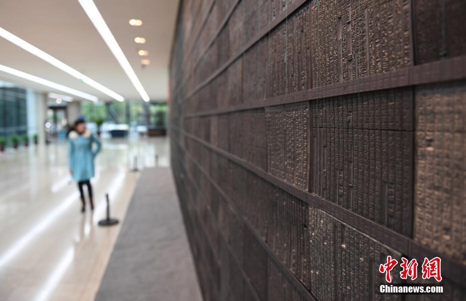 3月7日,《西湖志》刻本墻吸引當(dāng)?shù)厥忻耨v足。近日,中國(guó)水印版畫(huà)大展在浙江杭州展出,各類水印版畫(huà)作品集中亮相,呈現(xiàn)千年民族藝術(shù)之美,展現(xiàn)“東方智慧”。中新社記者王剛 攝