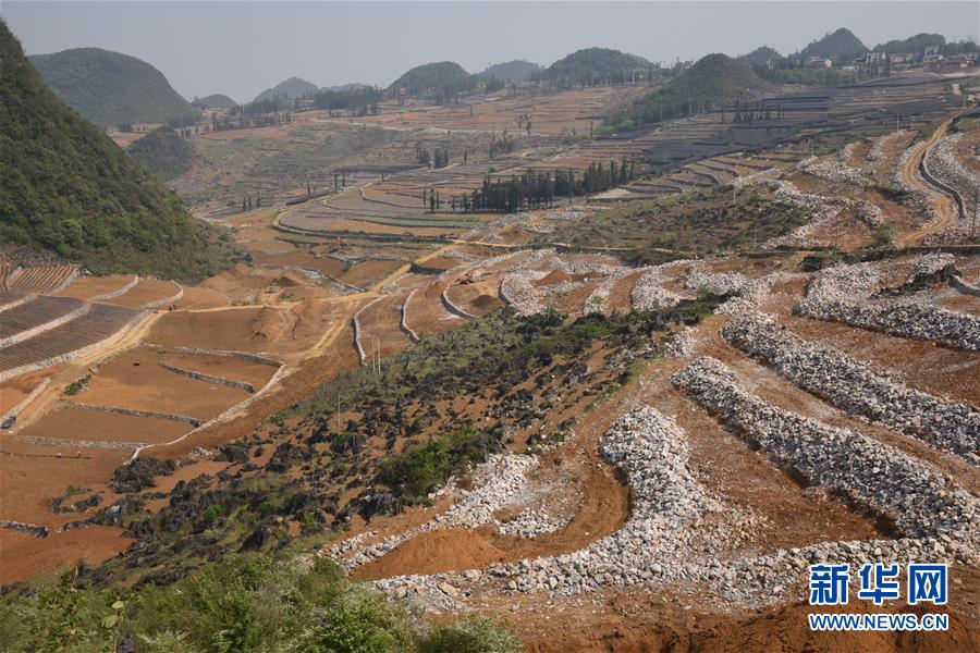 西疇縣興街鎮(zhèn)“三光”片區(qū)石漠化綜合治理工作接近尾聲,一片片石山被壘成臺(tái)地(2016年4月14日攝)。荒山禿嶺,怪石盤亙;河道斷流,重山阻隔。這是云南西疇,一個(gè)被專家稱為“失去生存條件”的地方。就在這樣一個(gè)地方,當(dāng)?shù)馗刹咳罕娨浴暗炔皇寝k法,干才有希望”的奮斗精神,戰(zhàn)天斗地、自力更生。目前,西疇縣公路密度是全省3倍,行政村、自然村通公路率均達(dá)100%。今年,西疇縣計(jì)劃脫貧摘帽。新華社記者吉哲鵬攝