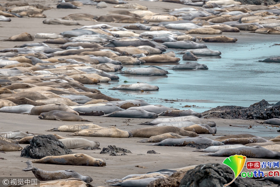 美國(guó)加州,阿根廷攝影師Lucio Moujan鏡頭下的圣西蒙海灘,整個(gè)海灘被陽光下午睡的象海豹占領(lǐng)。攝影師說道,“那里大概有數(shù)百只象海豹吧,我不知道具體數(shù)目,但是那有一大群。