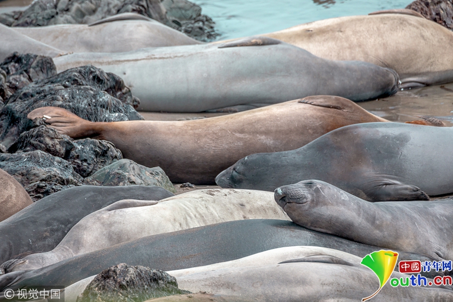 美國加州,阿根廷攝影師Lucio Moujan鏡頭下的圣西蒙海灘,整個(gè)海灘被陽光下午睡的象海豹占領(lǐng)。攝影師說道,“那里大概有數(shù)百只象海豹吧,我不知道具體數(shù)目,但是那有一大群。
