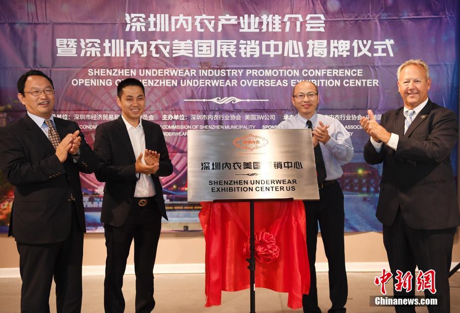 當(dāng)?shù)貢r(shí)間7月17日,深圳市內(nèi)衣行業(yè)協(xié)會(huì)在中美國(guó)際(美東)創(chuàng)業(yè)港——默特爾比奇市Waccoma Center舉行深圳內(nèi)衣產(chǎn)業(yè)推介會(huì)暨深圳內(nèi)衣美國(guó)展銷中心揭牌儀式。中美國(guó)際(美東)創(chuàng)業(yè)港聯(lián)合深圳市內(nèi)衣行業(yè)協(xié)會(huì)為深圳內(nèi)衣品牌進(jìn)駐美東市場(chǎng)搭建綠色通道和產(chǎn)業(yè)孵化平臺(tái),采用“時(shí)尚秀+靜態(tài)展”的形式,促進(jìn)中美內(nèi)衣文化和時(shí)尚的交流。圖為霍里郡議會(huì)主席馬克先生Mark Lazrus(右一)、深圳市經(jīng)濟(jì)貿(mào)易和信息化委員會(huì)副主任高林(左一)、美國(guó)3W公司董事長(zhǎng)王為工(右二)、深圳市內(nèi)衣行業(yè)協(xié)會(huì)常務(wù)副會(huì)長(zhǎng)兼秘書(shū)長(zhǎng)張峰偉(左二)出席揭牌儀式。中新社記者 陳文 攝