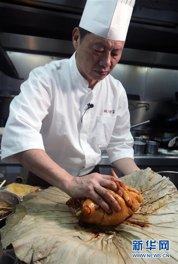 杭州酒家老板吳瑞康現(xiàn)場制作本店招牌菜“叫化雞”(6月16日攝)。 金庸在武俠小說《神雕俠侶》中借郭靖之口說過: “為國為民,俠之大者。”武俠精神在香港備受推崇,有其心向中華文化的情感基礎(chǔ)。在這個國際美食之都,品味舌尖上的武俠味,內(nèi)中的感覺別有深意。新華社記者 李鵬 攝