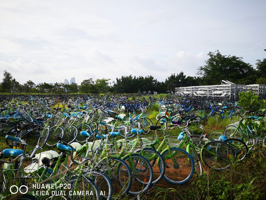 大量的共享單車存放在此,多為小藍單車和酷騎單車(網(wǎng)友“東の風”拍攝)