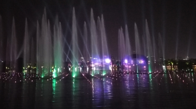 登上岳陽樓的游客用手機拍攝洞庭湖美景(7月20日攝)。