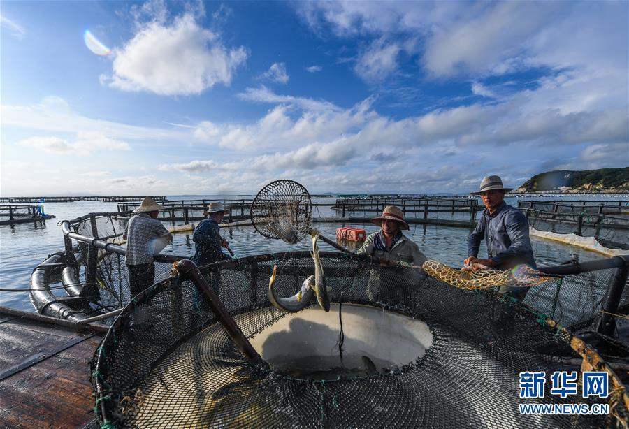 8月18日,南麂島海域的“海上牧場(chǎng)”養(yǎng)殖區(qū)內(nèi),漁民正捕撈大黃魚(yú),處于仿生養(yǎng)殖環(huán)境的大黃魚(yú)需要生長(zhǎng)2至3年。進(jìn)入8月,浙江省溫州市平陽(yáng)縣南麂鎮(zhèn)海域上大片的大黃魚(yú)、貽貝等特色海產(chǎn)品養(yǎng)殖區(qū)域迎來(lái)豐收季節(jié),養(yǎng)殖戶們駕駛漁船在養(yǎng)殖區(qū)海域進(jìn)行打撈收獲,在碧海藍(lán)天下構(gòu)成了一幅“海上牧場(chǎng)”的美麗豐收景象。近年來(lái),南麂鎮(zhèn)政府引導(dǎo)漁民養(yǎng)殖戶充分發(fā)揮“靠海吃?!钡馁Y源優(yōu)勢(shì),大力發(fā)展海洋養(yǎng)殖經(jīng)濟(jì)和海島旅游經(jīng)濟(jì),實(shí)現(xiàn)了南麂由“生態(tài)美”向“產(chǎn)業(yè)美”,“產(chǎn)業(yè)美”向“經(jīng)濟(jì)美”的轉(zhuǎn)變。同時(shí)該鎮(zhèn)堅(jiān)持以大黃魚(yú)、貽貝等為特色產(chǎn)業(yè)支撐,精準(zhǔn)發(fā)展高效海洋養(yǎng)殖業(yè),重點(diǎn)培養(yǎng)一批新型職業(yè)漁民,依靠專業(yè)技術(shù)支持,實(shí)現(xiàn)深海仿生養(yǎng)殖,讓好生態(tài)造就好品質(zhì),重點(diǎn)打造南麂養(yǎng)殖品牌,組建營(yíng)銷網(wǎng)絡(luò),拓展特色海產(chǎn)品市場(chǎng)。新華社記者 徐昱攝