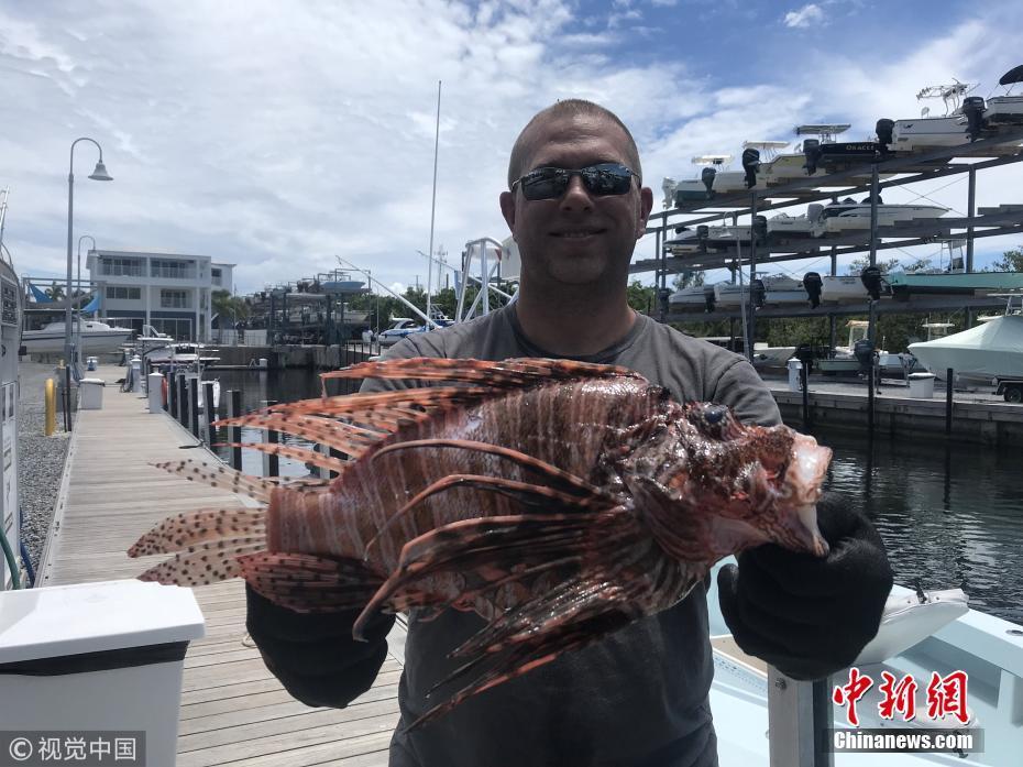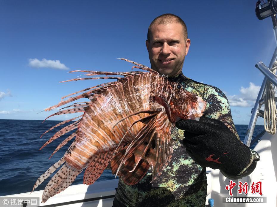 8月21日訊(具體拍攝時(shí)間不詳),近日,來(lái)自長(zhǎng)島的Timothy Blasko打破了記錄,他捕獲了大西洋最重的獅子魚(yú)。37歲的Timothy Blasko是一名技術(shù)精湛的捕魚(yú)者,當(dāng)天,他和朋友們?cè)诜鹆_里達(dá)群島伊斯拉莫拉達(dá)海岸捕魚(yú)時(shí),遇到了這條大魚(yú)。Timothy向朋友要來(lái)了魚(yú)叉,瞄準(zhǔn)大魚(yú)的下方位置叉去,正中目標(biāo)成功捕獲。當(dāng)他們把這條魚(yú)和當(dāng)天捕獲的其它魚(yú)排在一起時(shí),他們猜測(cè)這條魚(yú)可能會(huì)破紀(jì)錄?!八?jiǎn)直是獅子魚(yú)中的哥斯拉!” Timothy描述道,“這條巨大的獅子魚(yú)重達(dá)3.1磅,刷新了大西洋迄今最重獅子魚(yú)的國(guó)家紀(jì)錄?!眻D片來(lái)源:視覺(jué)中國(guó)