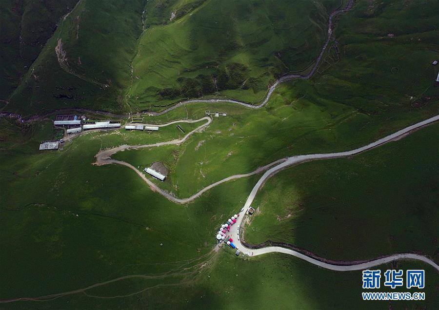 8月27日,當(dāng)?shù)剞r(nóng)民飼養(yǎng)的羊在大海草山吃草。新華社記者楊宗友 攝