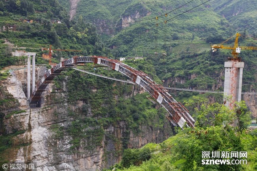 ???? 2018年5月30日,云南昭通,鸚哥大橋完成最后一段35米引橋現(xiàn)澆箱梁作業(yè),標(biāo)志著“鸚哥溜索改橋”主體工程完工,進(jìn)入最后階段的橋面鋪裝和防護(hù)欄施工,預(yù)計(jì)6月底建成通車。