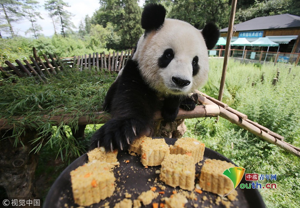 2016年9月10日,重慶,中秋節(jié)即將來(lái)臨,飼養(yǎng)員們給一些動(dòng)物也發(fā)放了“月餅”,根據(jù)不同的動(dòng)物選擇不同的食材。