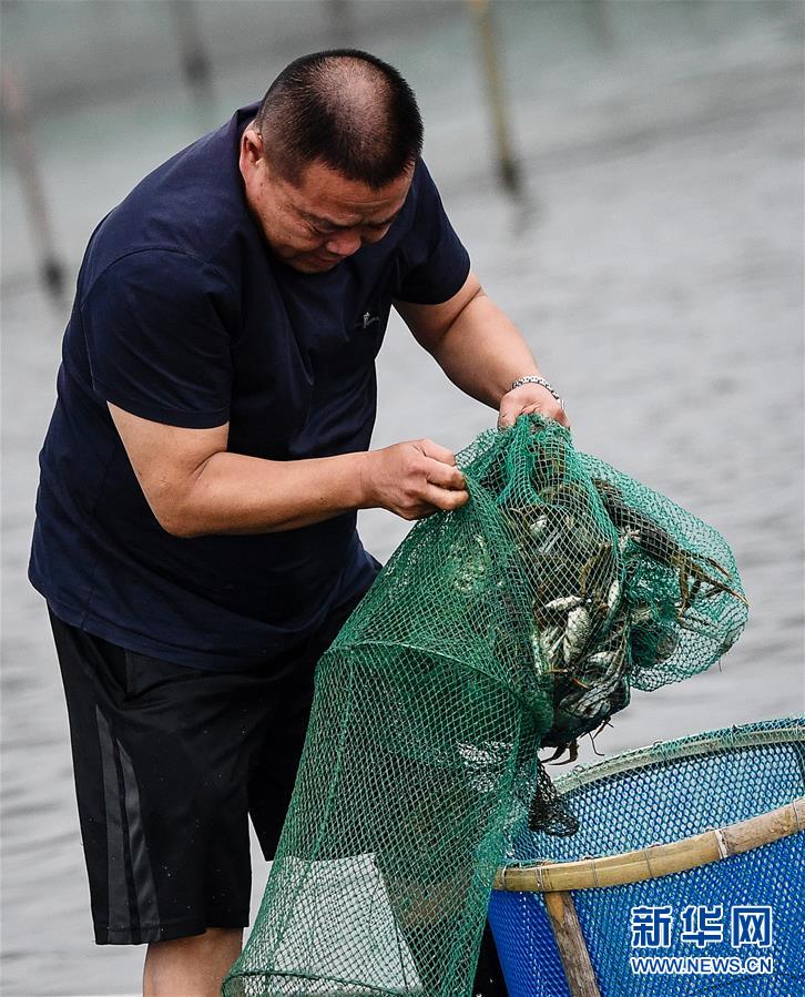 9月21日,蟹農展示剛捕撈到的陽澄湖大閘蟹。新華社記者李響攝