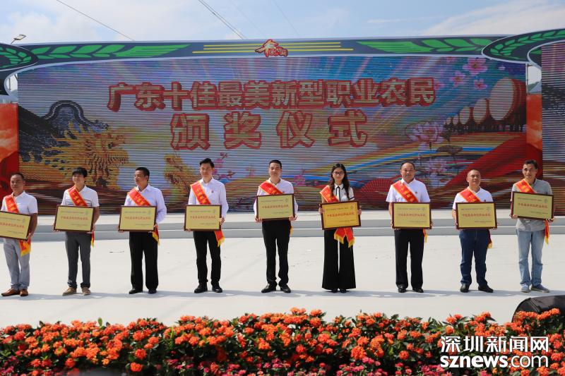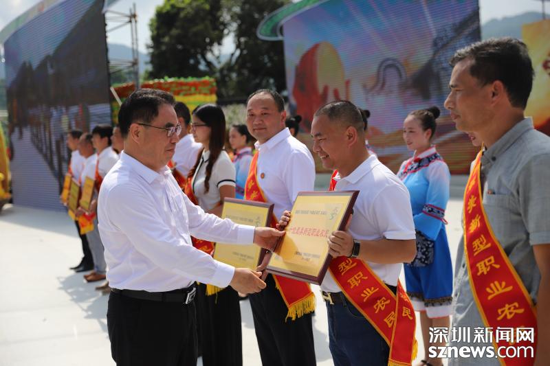 慶祝首屆“中國農(nóng)民豐收節(jié)”活動在梅州大黃村舉行,廣東省政府副省長葉貞琴為十佳最美新型職業(yè)農(nóng)民頒獎。