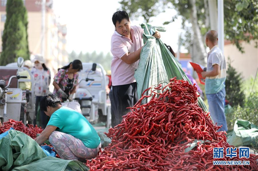 9月16日,阜城縣王集鄉(xiāng)南張莊村農(nóng)民在整理收獲的辣椒。近年來,河北省阜城縣王集鄉(xiāng)在推進產(chǎn)業(yè)富民過程中,積極引導(dǎo)農(nóng)民調(diào)整農(nóng)業(yè)產(chǎn)業(yè)結(jié)構(gòu),按照品種特色化、種植規(guī)?;a(chǎn)銷一體化的“公司+基地+農(nóng)戶”的經(jīng)營模式,鼓勵農(nóng)民發(fā)展特色辣椒種植,推行“訂單種植”模式,開辟出了一條農(nóng)民創(chuàng)收新路徑。目前,阜城縣王集鄉(xiāng)辣椒種植面積3100余畝,每畝年收益2500元以上,帶動當(dāng)?shù)剞r(nóng)民實現(xiàn)增收。新華社記者朱旭東攝