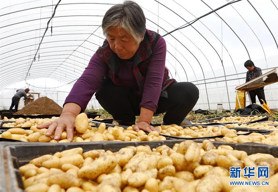 9月23日,張北縣小二臺鎮(zhèn)一家馬鈴薯育種中心的工人在大棚內(nèi)整理剛收獲的脫毒微型薯。 近年來,地處壩上地區(qū)的河北省張北縣因地制宜,積極推進馬鈴薯產(chǎn)業(yè)化發(fā)展,形成了馬鈴薯繁種育種、商品薯種植、倉儲、加工為一體的產(chǎn)業(yè)鏈,帶動農(nóng)民增收致富。 新華社記者楊世堯攝