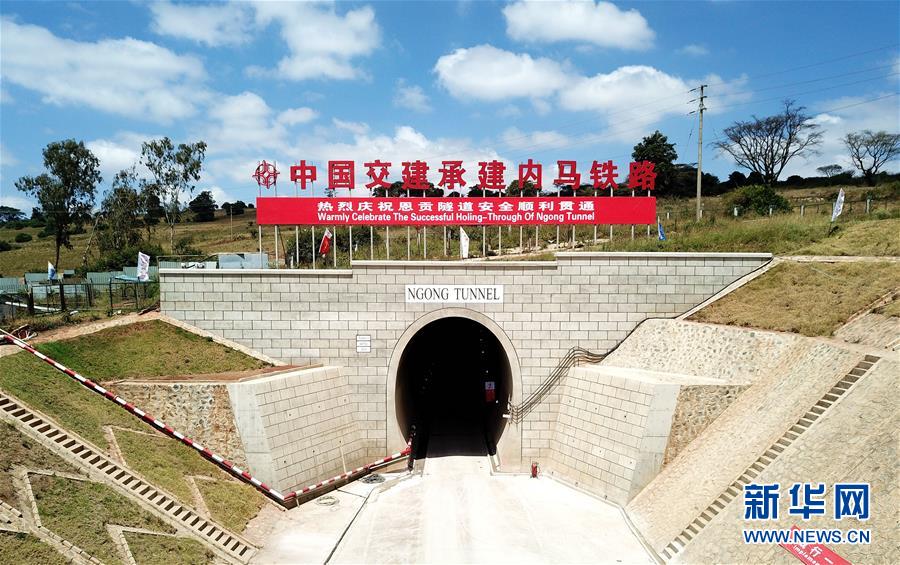 這是9月24日拍攝的內(nèi)羅畢-馬拉巴標(biāo)軌鐵路(內(nèi)馬鐵路)項目第一期恩貢隧道貫通儀式現(xiàn)場(航拍照片)。 由中國交通建設(shè)股份有限公司承建的內(nèi)羅畢-馬拉巴標(biāo)軌鐵路(內(nèi)馬鐵路)項目第一期恩貢隧道24日實現(xiàn)貫通。據(jù)悉,恩貢隧道全長約4.5公里,是目前東非地區(qū)最長的鐵路隧道。它的建成標(biāo)志著內(nèi)馬鐵路項目第一期取得了突破性進(jìn)展。 新華社記者王騰攝