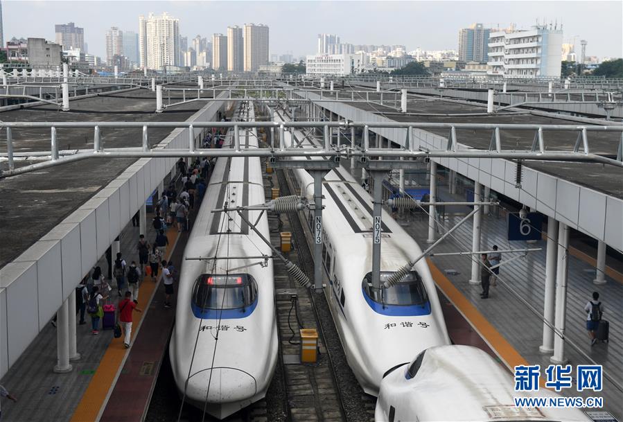 在廣西南寧東站,旅客在排隊(duì)候車,準(zhǔn)備出行(9月4日攝)。 廣西壯族自治區(qū)成立60年來,鐵路建設(shè)發(fā)生翻天覆地的變化。來自中國(guó)鐵路南寧局集團(tuán)有限公司的數(shù)據(jù)顯示,1958年廣西鐵路總里程為1346.3公里,如今廣西鐵路總里程達(dá)5191公里。廣西與周邊相鄰省份間實(shí)現(xiàn)動(dòng)車“公交化”開行。此外,北部灣港—重慶班列、東盟海產(chǎn)品冷鏈班列、“百色一號(hào)”果蔬專列等的開通和運(yùn)營(yíng),強(qiáng)化了鐵路供給的針對(duì)性和有效性。鐵路成為助推廣西經(jīng)濟(jì)社會(huì)快速發(fā)展的“大動(dòng)脈”。 新華社記者陸波岸攝